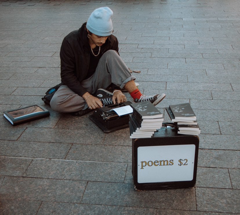 the idea is to get poetry out to people for almost free because i know everybody has a few dollars and a story. i can't possibly meet you all in person with my typewriter but now you can get a poem from me anyway :)